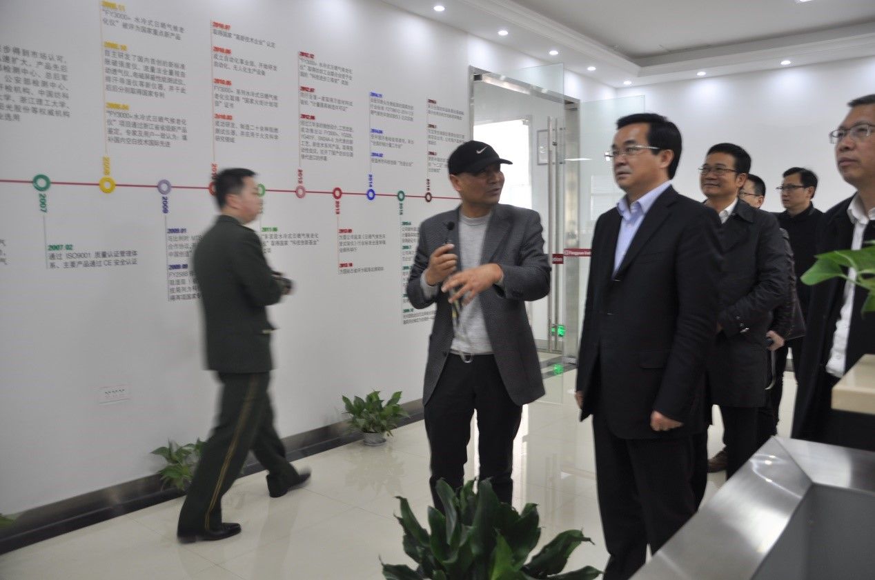 2018年3月9日,副省長高興夫赴龍灣調研小微企業(yè)園區(qū)建設運營管理工作時,實地走訪我公司。副市長陳建明,區(qū)委副書記、區(qū)長周一富隨同調研。副省長高興夫等領導在我公司董事長、總工程師李文霖的陪同下,參觀了我公司的機加工車間、組裝調試車間、榮譽展示廳、樣品展示廳??疾熘?,李文霖董事長向考察組領導詳細匯報溫州方圓儀器有限公司發(fā)展歷史、企業(yè)規(guī)模、管理經驗、技術創(chuàng)新、發(fā)展規(guī)劃等。調研組領導對我公司取得的成績給予充分肯定,并囑咐我們要堅持走自主創(chuàng)新的道路,加快新產品開發(fā)力度,提高市場影響力。