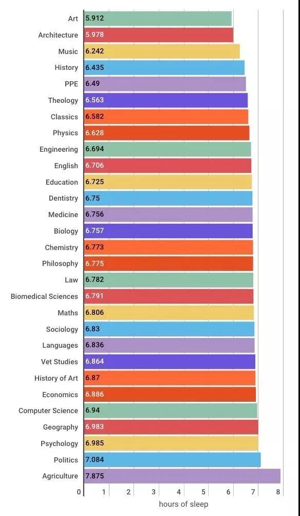 Tab網(wǎng)站之前做了一個(gè)英國大學(xué)各專業(yè)睡眠時(shí)間的調(diào)查,超過4000人參與了調(diào)查。