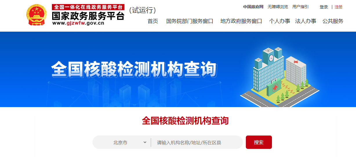 在我國的政務(wù)平臺上就能查詢到可以出英文核酸報告的機(jī)構(gòu)了!