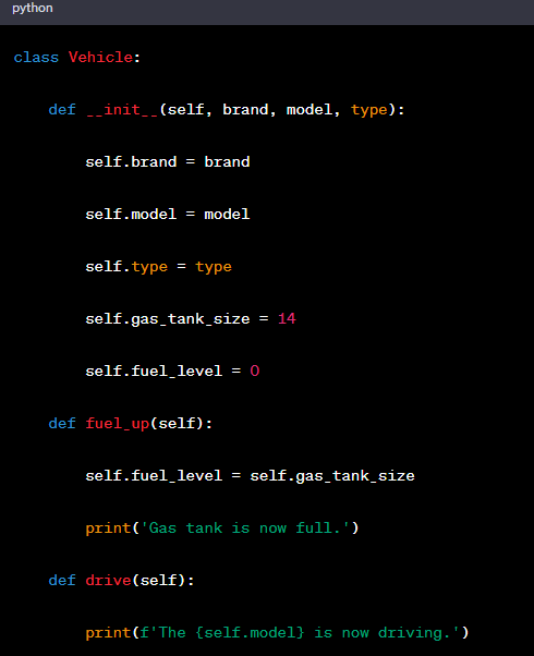 Python中的類定義以class關(guān)鍵字開頭,就像函數(shù)定義以def關(guān)鍵字開頭一樣。類的第一個(gè)字符串內(nèi)包含了類的簡要描述,稱為文檔字符串。雖然不是必需的,但強(qiáng)烈建議使用。