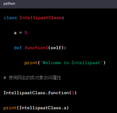 所有屬性,包括雙下劃線()的特殊屬性,如__init()和__doc__,都將由創(chuàng)建類聲明()創(chuàng)建的本地命名空間。讓我們通過一個(gè)Python類示例來理解這一點(diǎn)。一旦生成了類,也會(huì)生成一個(gè)類對(duì)象,用于訪問類中的屬性。