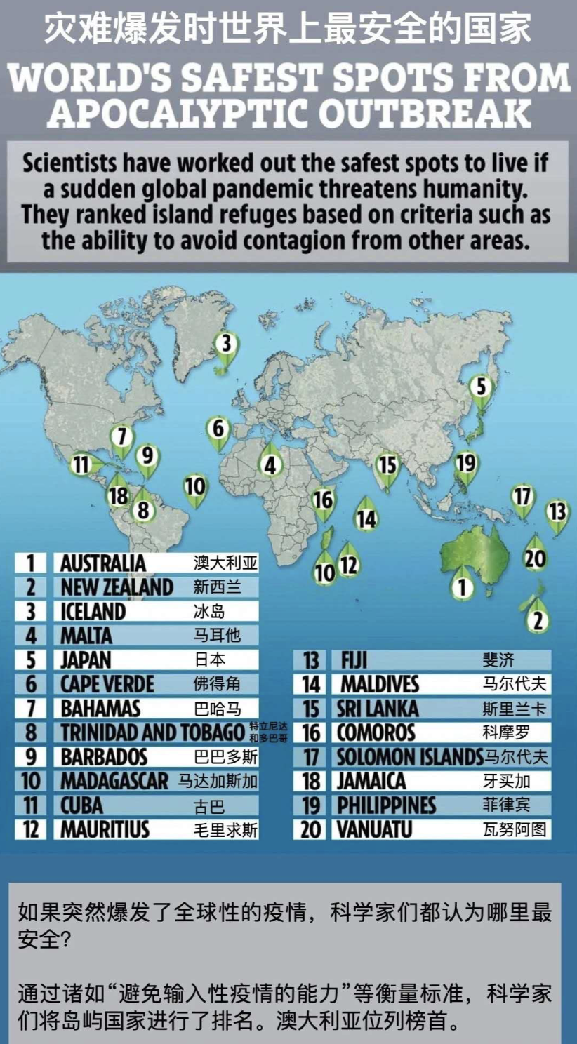 在最適合抵御全球性災(zāi)難的國(guó)家中,