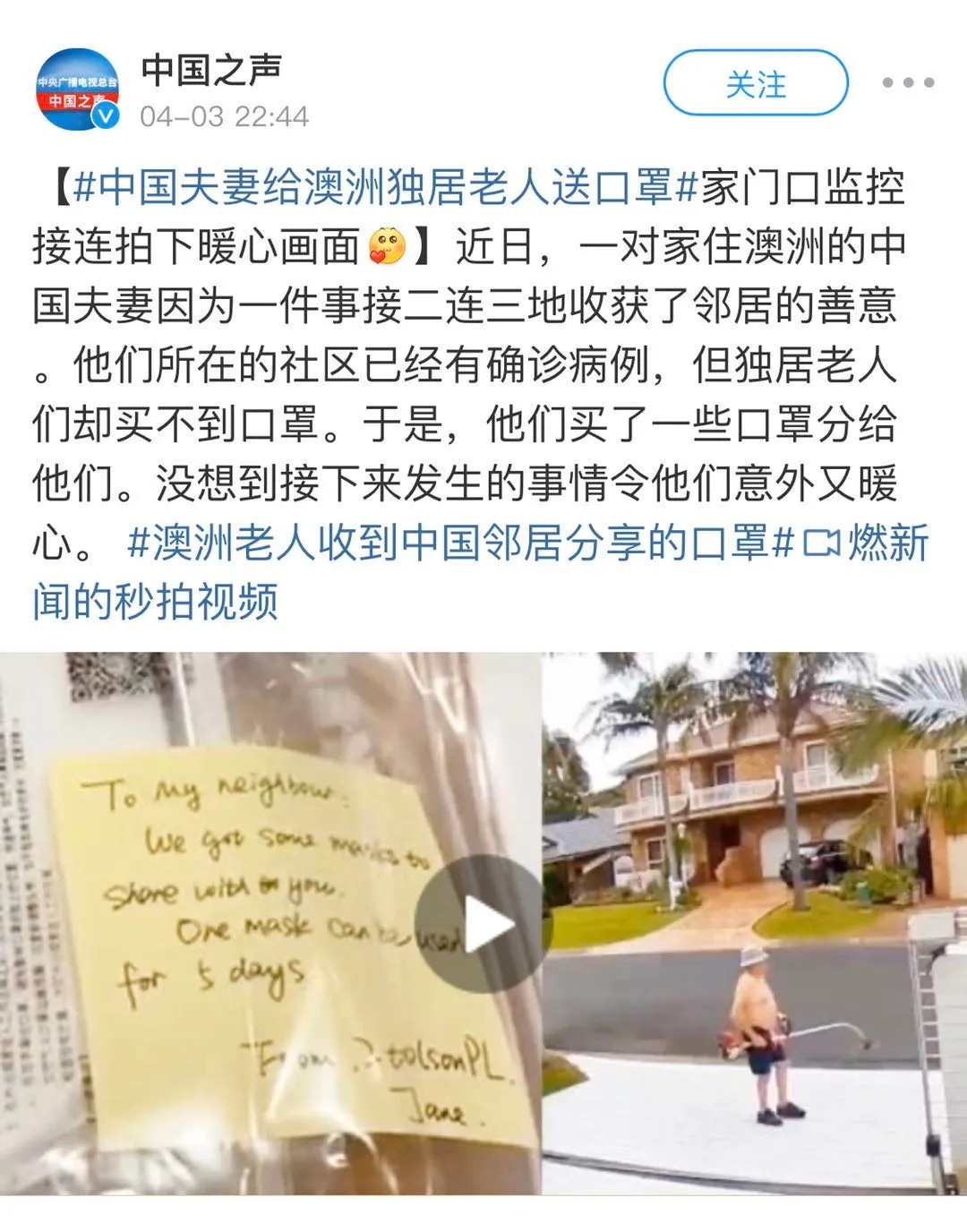 也有越來(lái)越多的人把口罩這種當(dāng)下最牛的硬通貨,送給素不相識(shí)的人:
