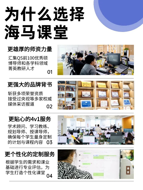 在留學(xué)的漫漫征途中,留學(xué)生們面臨著諸多學(xué)業(yè)挑戰(zhàn),而海馬課堂以“幫助留學(xué)生學(xué)有所成”為使命,持續(xù)為留學(xué)生的學(xué)業(yè)進(jìn)步做貢獻(xiàn),進(jìn)而成為他們最為信任的伙伴機(jī)構(gòu)。
