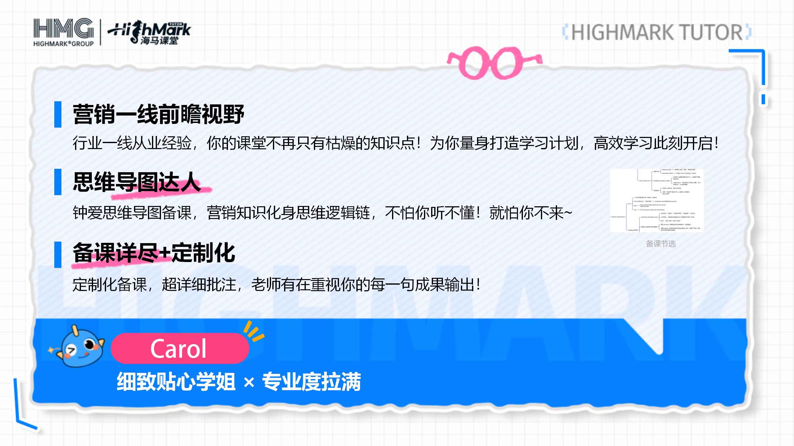 教學方式:擅長用思維導圖講解知識體系,幫助學生搭建完整知識框架,化繁為簡。