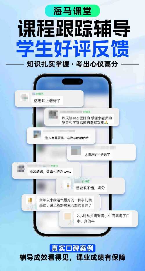 在海馬課堂,我們提供的不僅是留學生課程輔導,更是一種全面的學習支持體系。我們的專業(yè)導師將根據(jù)每位留學生的需求,定制個性化的一對一輔導計劃,幫助他們在各類課程中取得優(yōu)異成績。選擇海馬課堂,讓我們一起為你的學業(yè)鋪平道路,實現(xiàn)夢想!