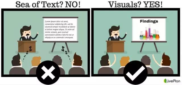 因?yàn)楹芏鄷r(shí)候幻燈片需要保存為pdf格式,而且這些容易分散觀眾的注意力,使觀眾只記得動(dòng)畫(huà),而不記得你傳達(dá)的信息。也別過(guò)度運(yùn)用圖標(biāo)來(lái)顯示你的專業(yè),因?yàn)閳D標(biāo)太多、太小,反而會(huì)讓觀眾失去耐心。