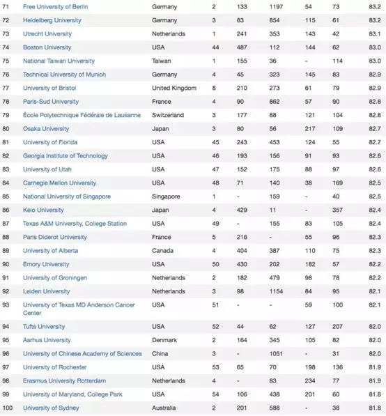 中國臺灣排名最高的高校為臺灣大學(xué),位列世界第75名,也是中國臺灣唯一進(jìn)入世界前100的大學(xué)。中國香港進(jìn)入榜單的7所大學(xué)中,香港大學(xué)以世界第169名,位列中國香港榜首。中國澳門則有澳門大學(xué)(第822名)和澳門科技大學(xué)(第1414名)2所大學(xué)進(jìn)入榜單。